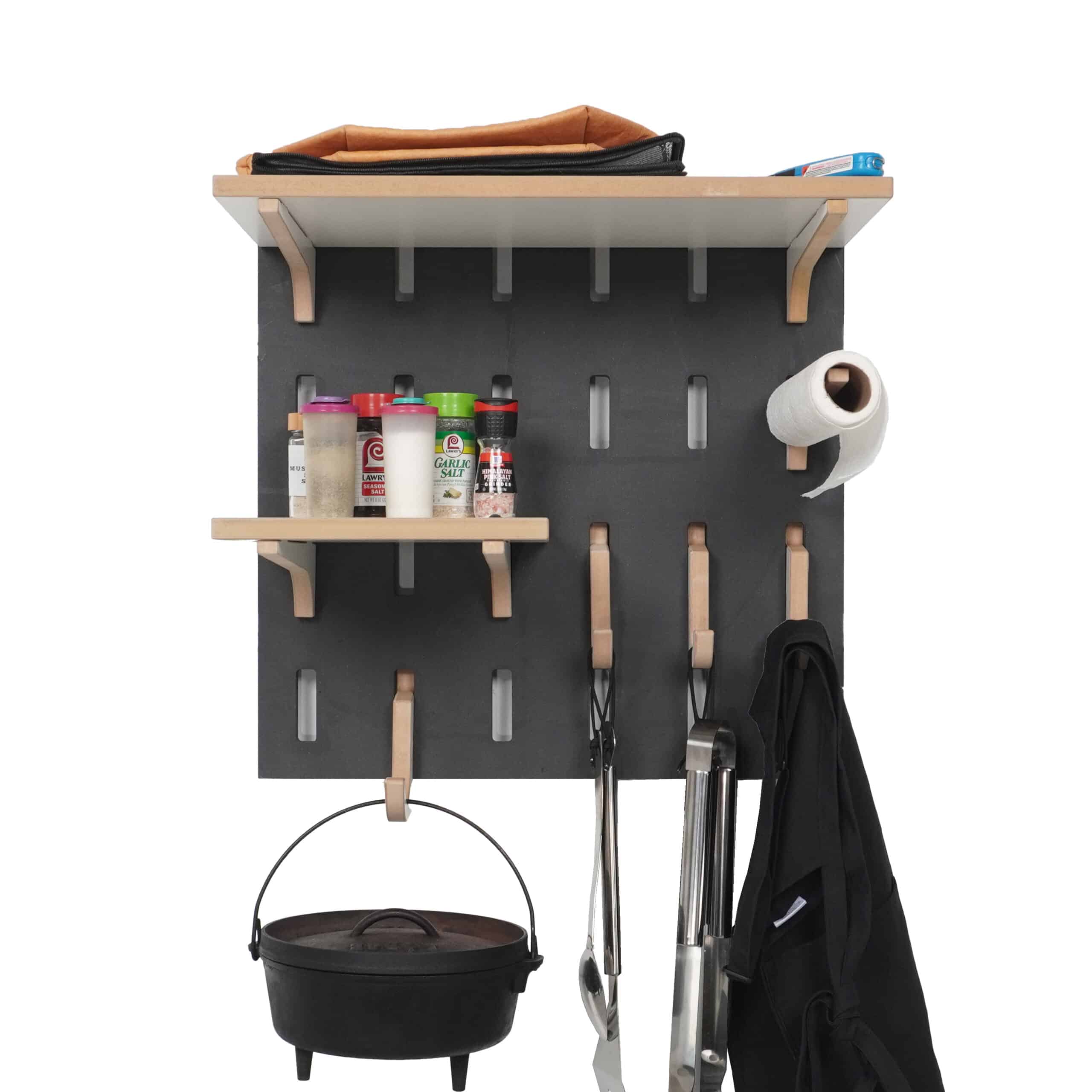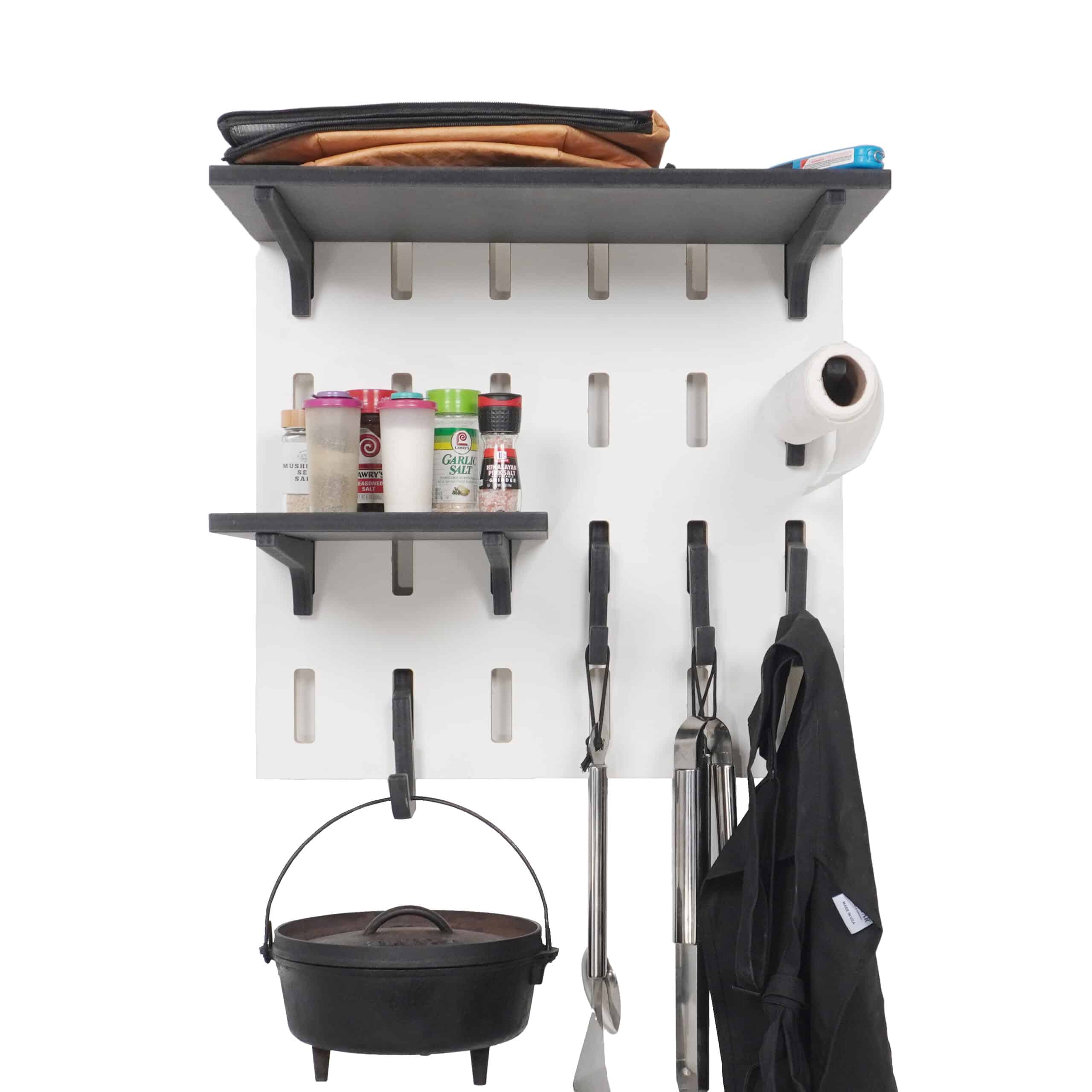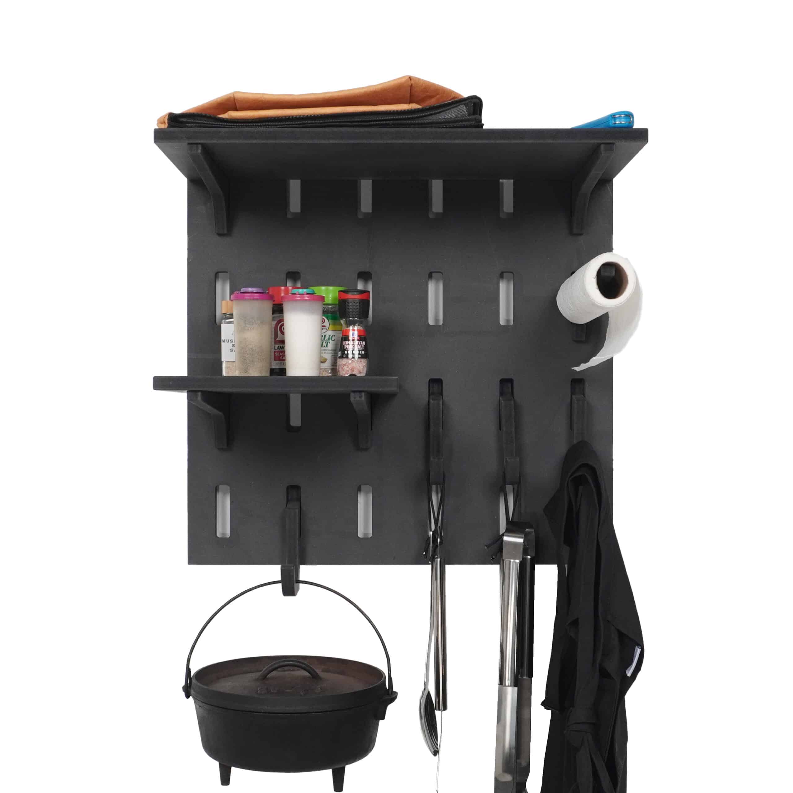 FlexRak’s BBQ Organizer Kit isn’t just storage—it’s your personal BBQ command center. The BBQ Organizer Kit includes a rugged 4×2 panel, adjustable shelves, and interchangeable hooks that adapt to your style of grilling. Need a spot for skewers? Extra space for sauces? Done. Built tough to handle heavy gear, FlexRak installs quickly and stays rock solid through years of use. And when your setup changes, your FlexRak changes with you. From backyard cookouts to big family feasts, it’s the one system that grows with your needs. The only limit is your imagination—everything else is designed for pure grilling convenience.