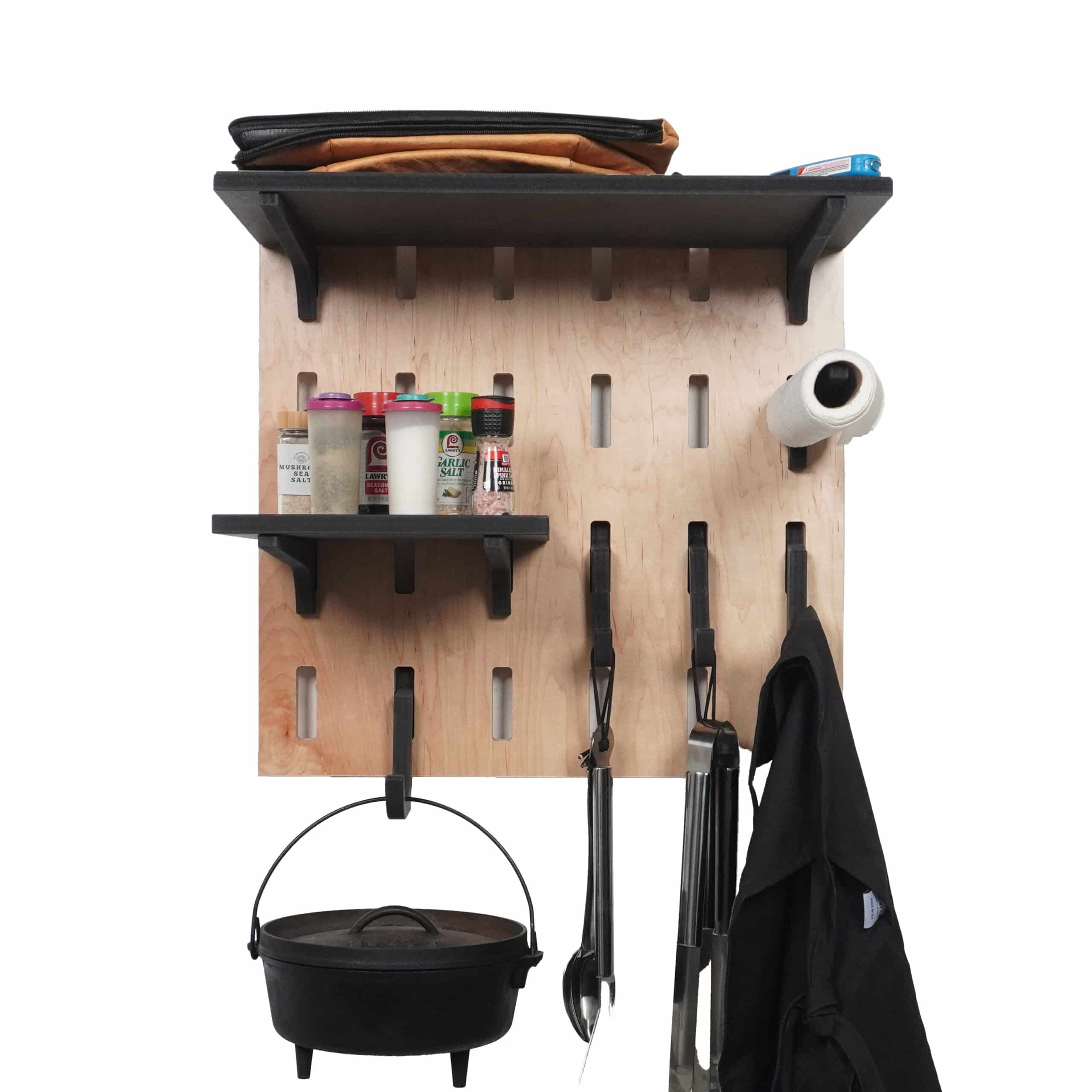 Durable shelves and hooks to handle your BBQ Tools