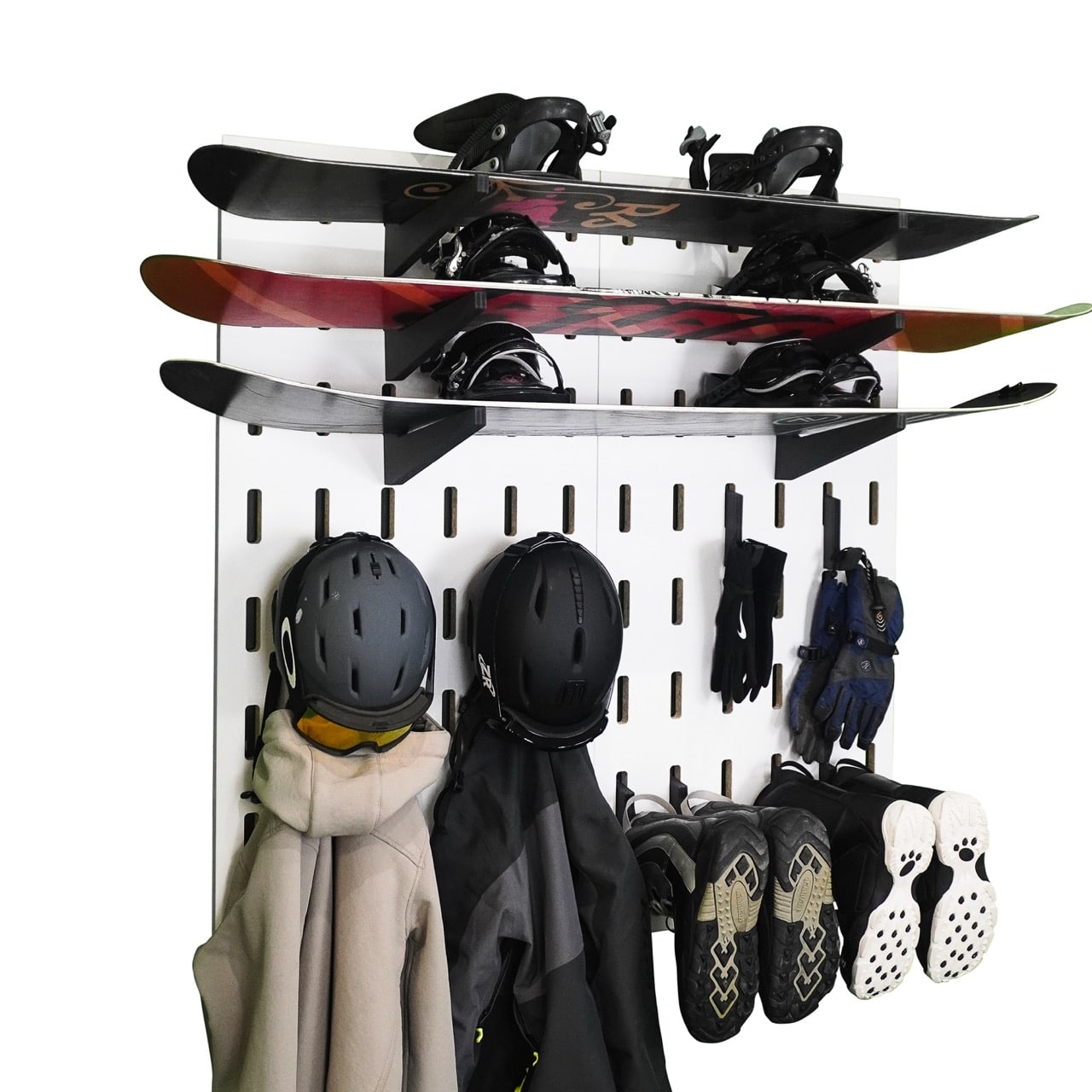 The Snowboarding Organization FlexRak Kit is perfect for storing your snowboards, helmets, boots, gloves, and coats. FlexRak’s adjustable bars will keep any of your snowboarding gear organized, protected, and easily accessible the next time you’re ready to hit the slopes. Includes Full Installation Kit.